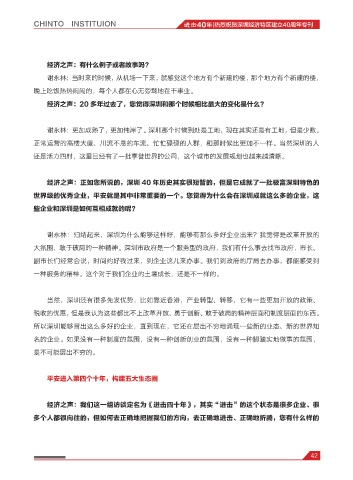 经济之声:正如您所说的,深圳 40 年历史其实很短暂的,但是它成就了一批极富深圳特色的