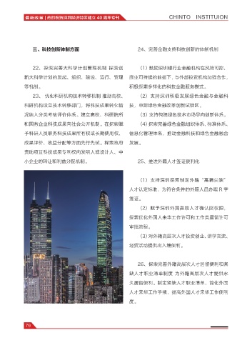 23、 优化科研机构技术转移机制 推动高校、 (2)支持深圳积极发展绿色金融与金融科